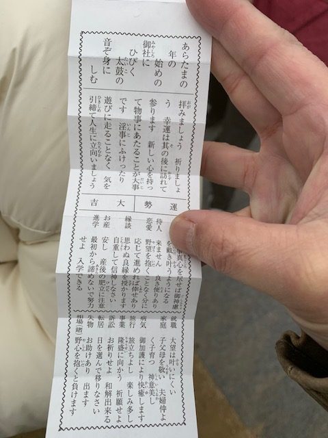 2026/1/7 カテゴリー: ちょっと一服 今年の運勢 当然ではありますが、いままで元旦の初詣は どこもかしこも人出がすごいので、3日とか 日程をずらして参拝させてもらっていましたが 今年は何年かぶりに元旦に初詣させて頂きまし て、久しぶりに長蛇の列に並びました。 その成果も … タグ: おみくじ | 元旦 | 初詣 | 大吉 詳細を見る