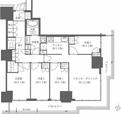 2LDK 61.5m2 ( 18.6坪 ) |