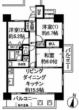 2LDK 61.75m2 |