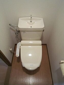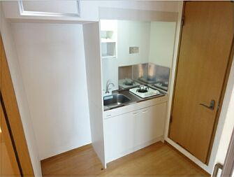 エレベータ、バストイレ別、エアコン、ミニキッチン(ガス1口)、室内洗濯機置場、温水洗浄便座、洗面化粧台、洋室、クローゼット、バルコニー、角部屋、BS