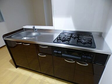 バストイレ別、エレベータ、オートロック、TVモニター付インターホン、エアコン、対面キッチン、システムキッチン、ガスキッチン(3口コンロ付)、室内洗濯機置場、温水洗浄便座、シャンプードレッサー、収納、クローゼット、洋室、フローリング、バルコニー、二階以上、BS、CS、高速ネット回線対応、ネット使用料無料、駐輪場、防犯カメラ付、宅配ボックス