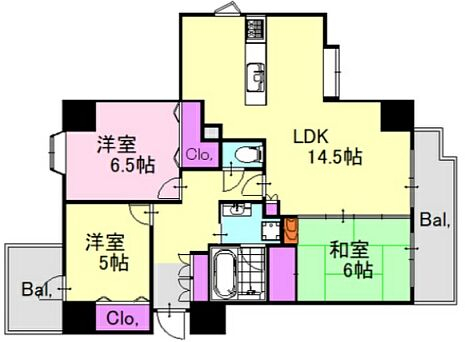 | 間取詳細 | 和6、洋6.5、洋5、LDK14.5 | ||